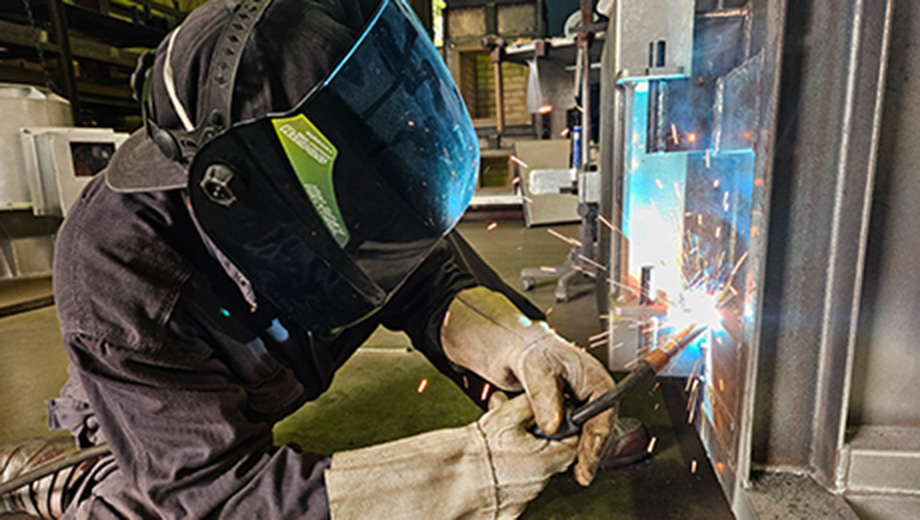 焼却炉本体に、扉・天井・ダクトなど溶接で接続をします。